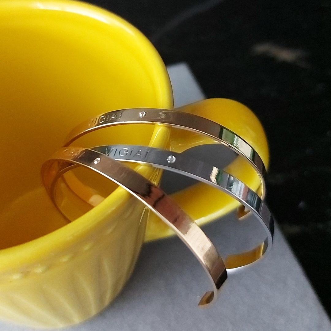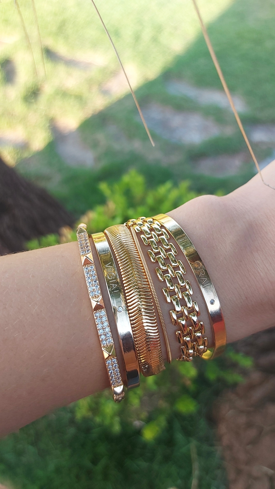 Semijoia - Bracelete Liso Vigiai Zircônia Confeccionado em Banho de Ouro Amarelo de 18K.