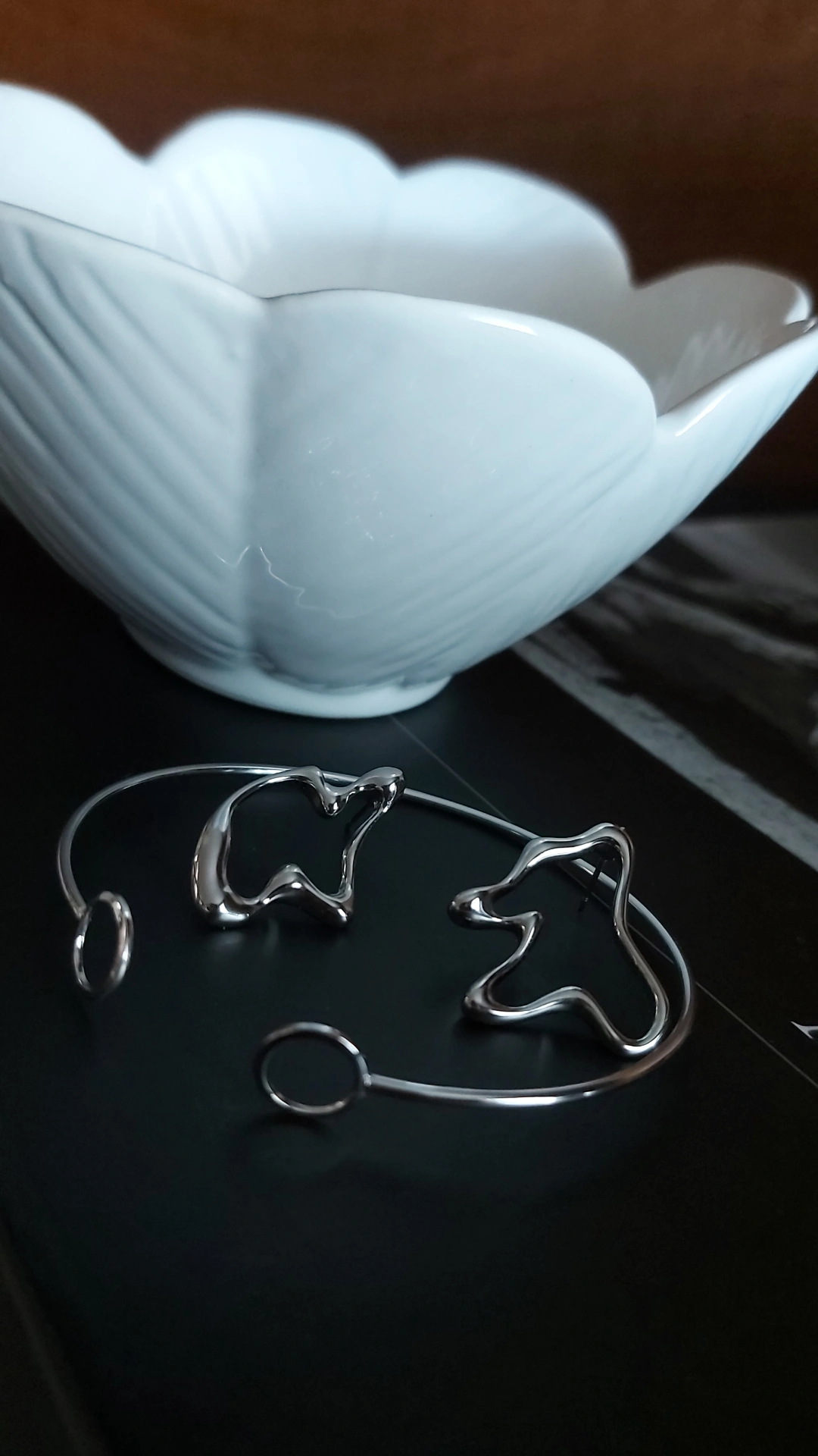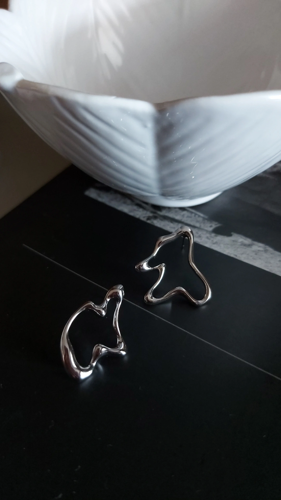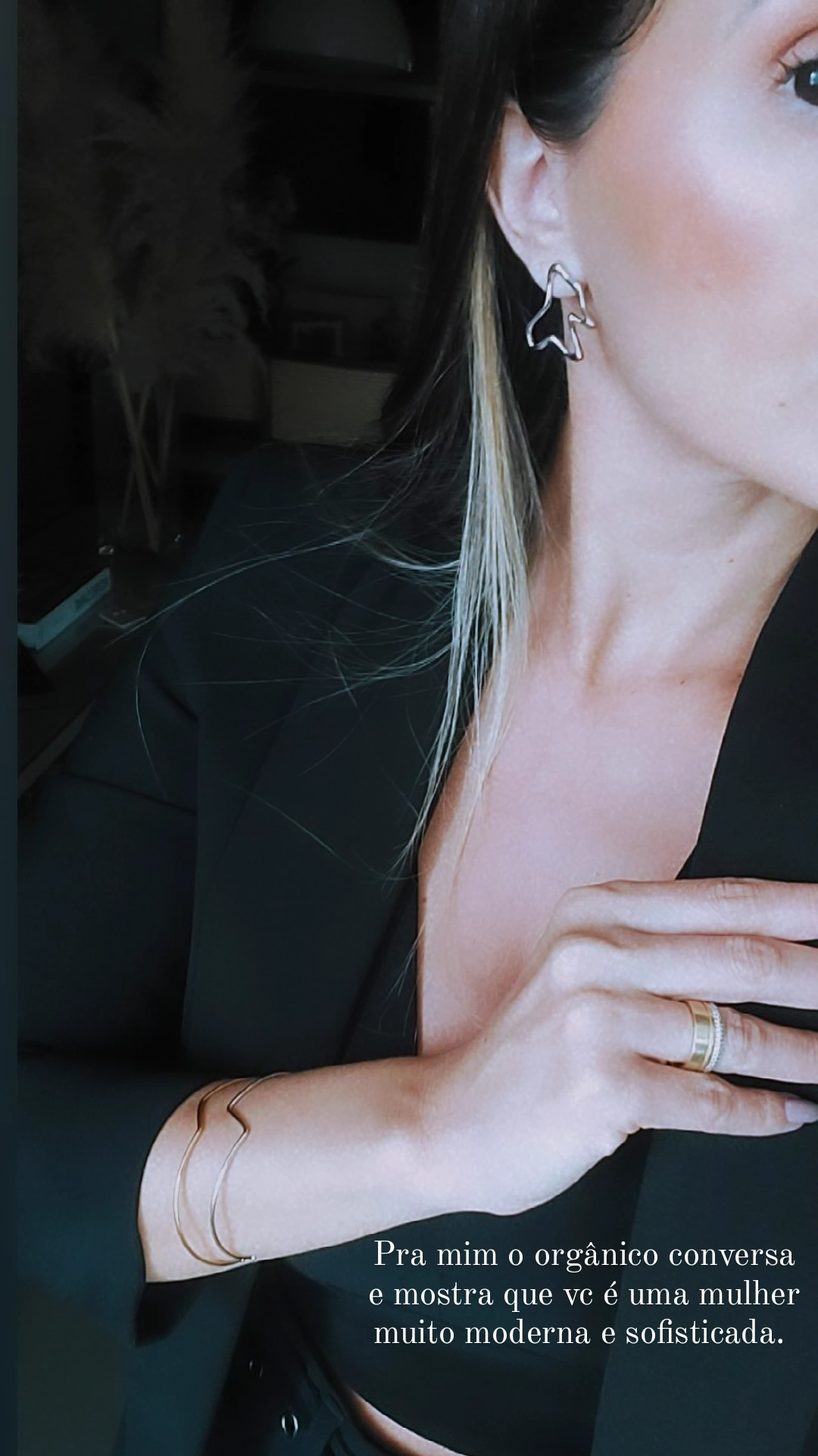 Semijoia - Brinco orgânico Liso Confeccionado no Banho de Ródio Branco.