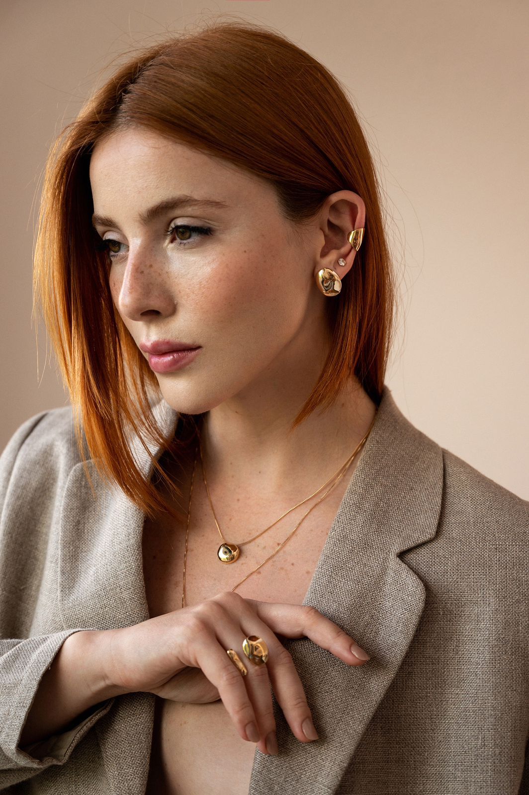 Conjunto ondas banhado em ouro amarelo 18k.