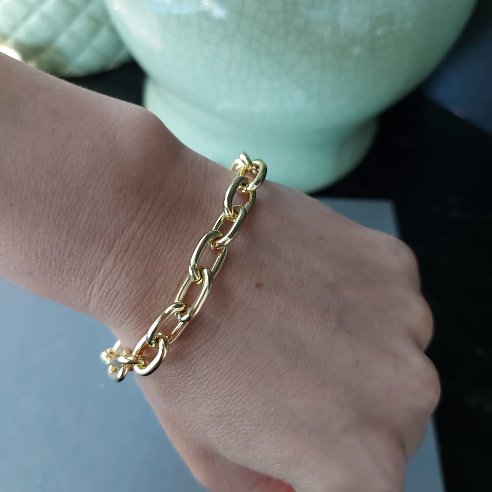 Semijoias: Pulseira elos banhada em ouro amarelo 18k.