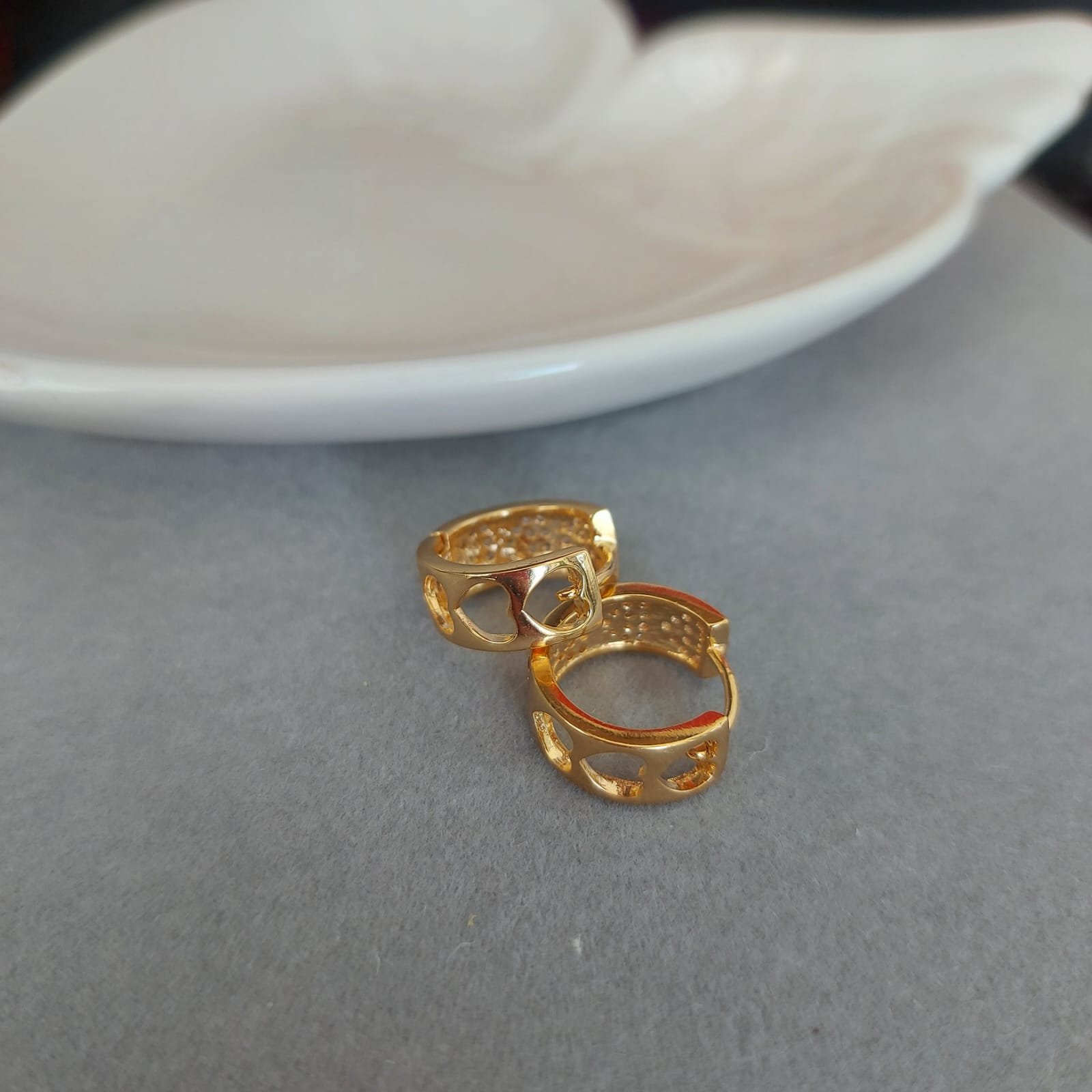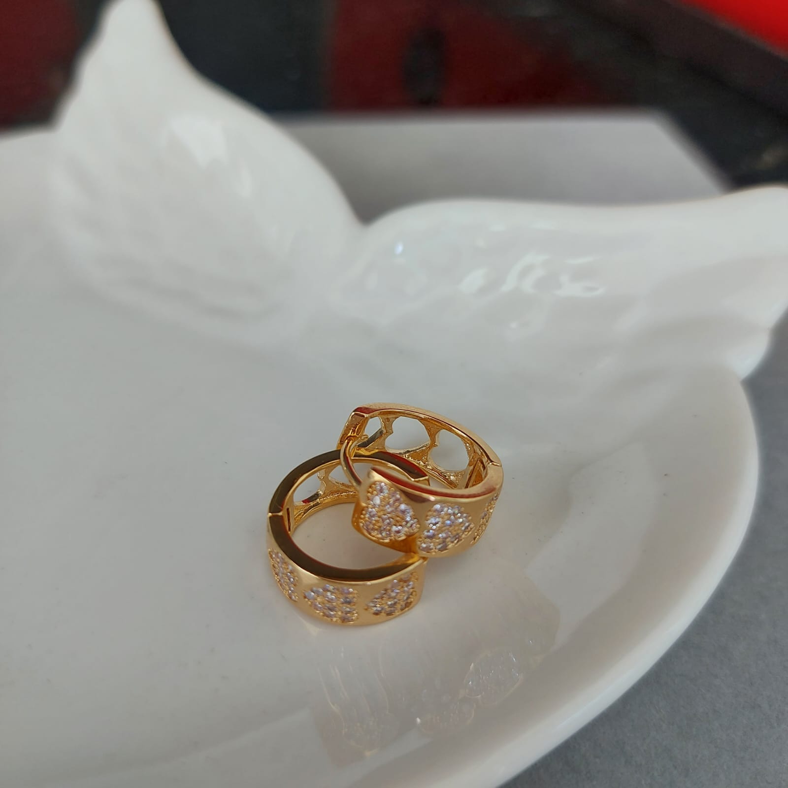 Semijoias: Argola detalhe coração cravejada em micro zircônia banhada em ouro de 18k.