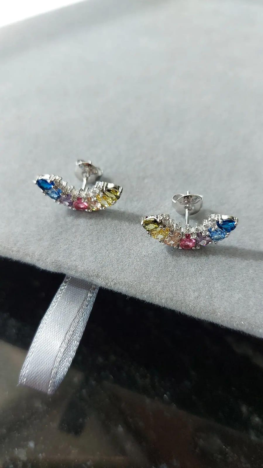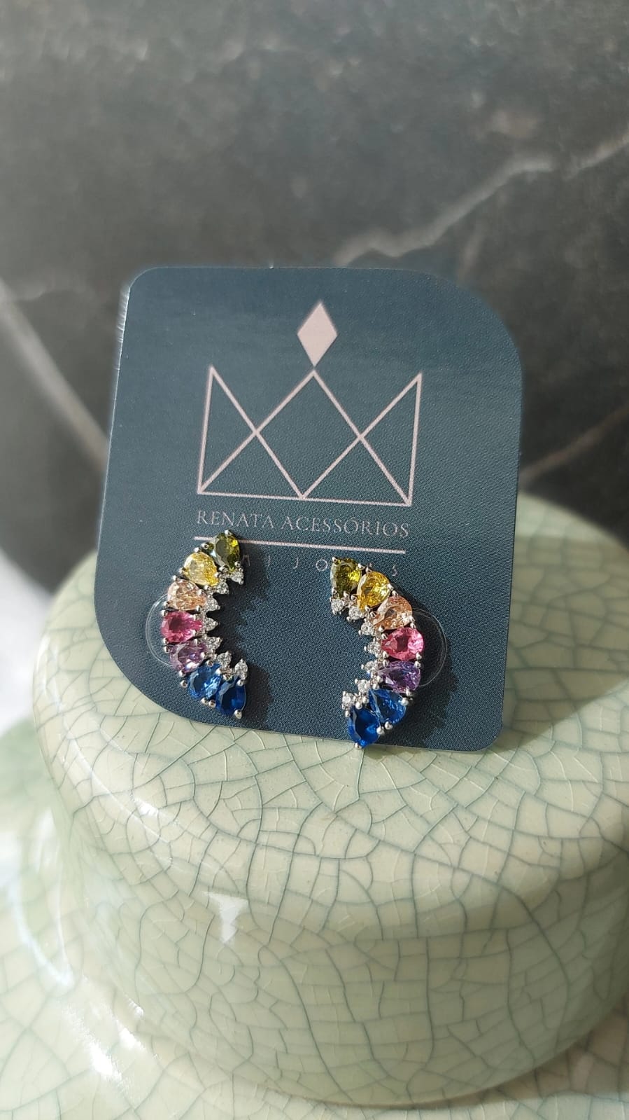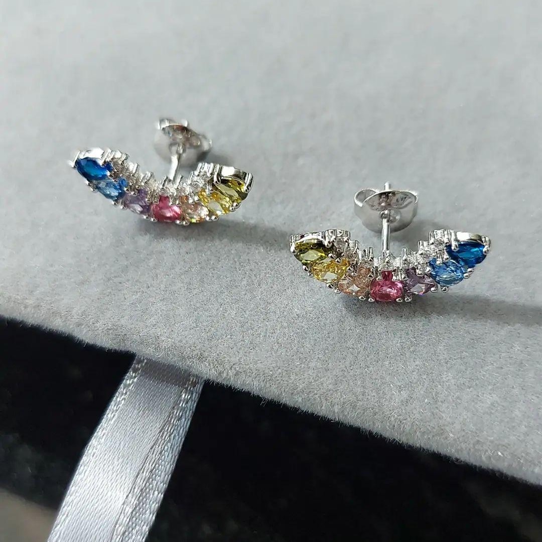 Semijoia: Brinco ear cuff cristal e micro zircônia banhados em ródio branco.