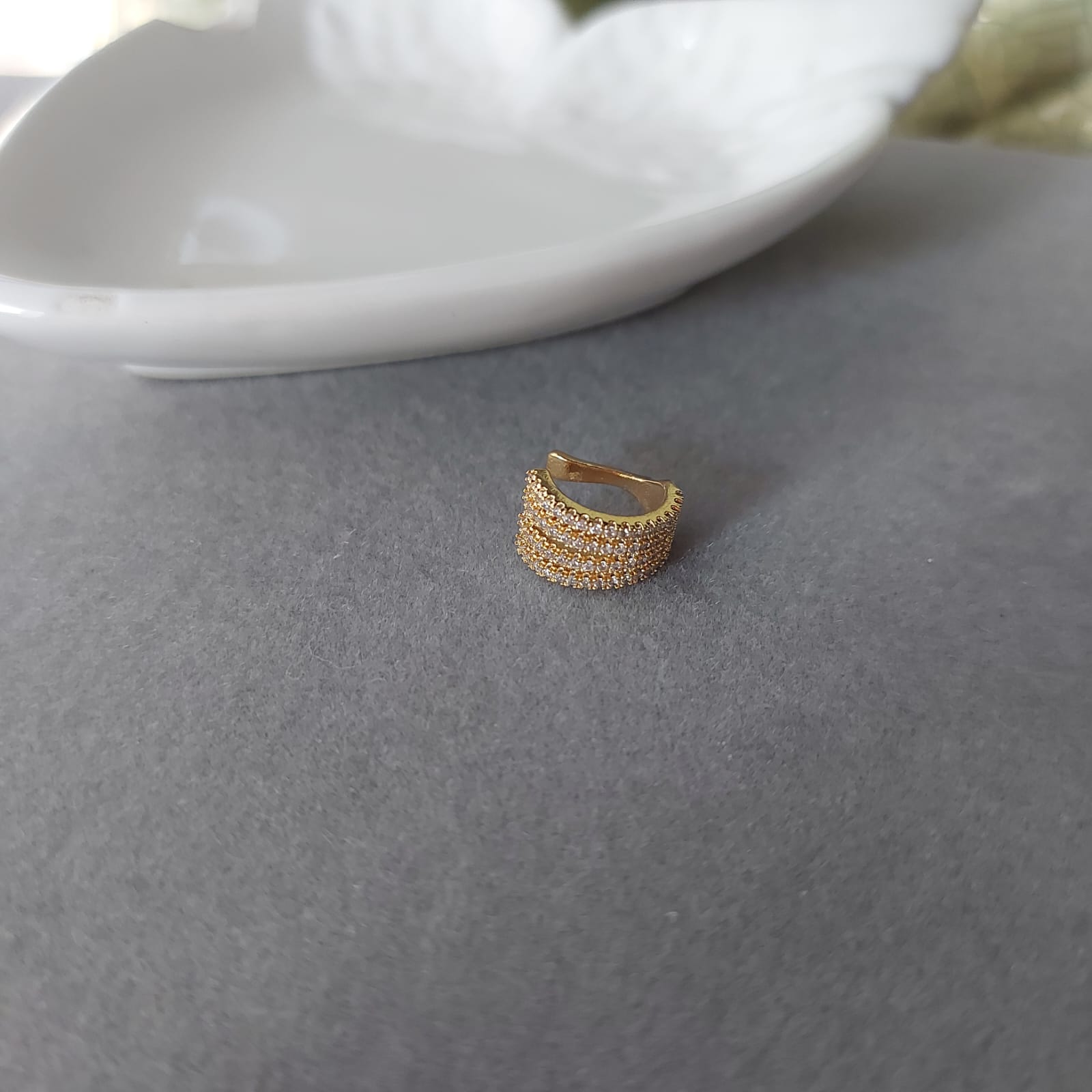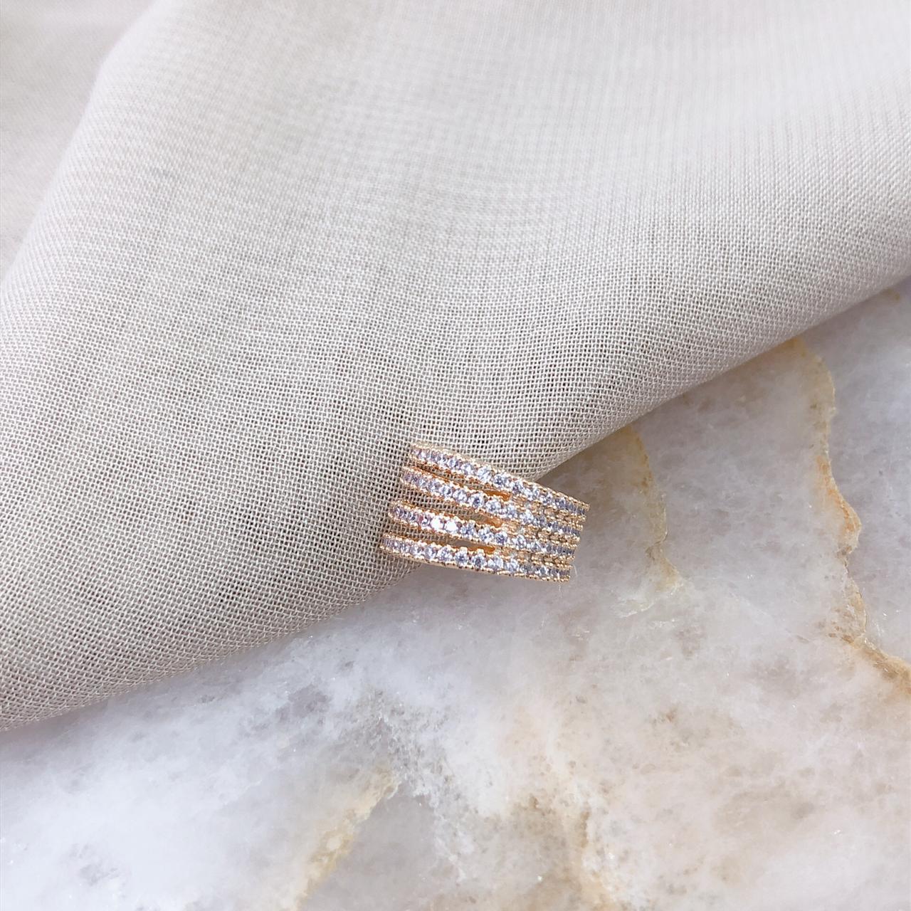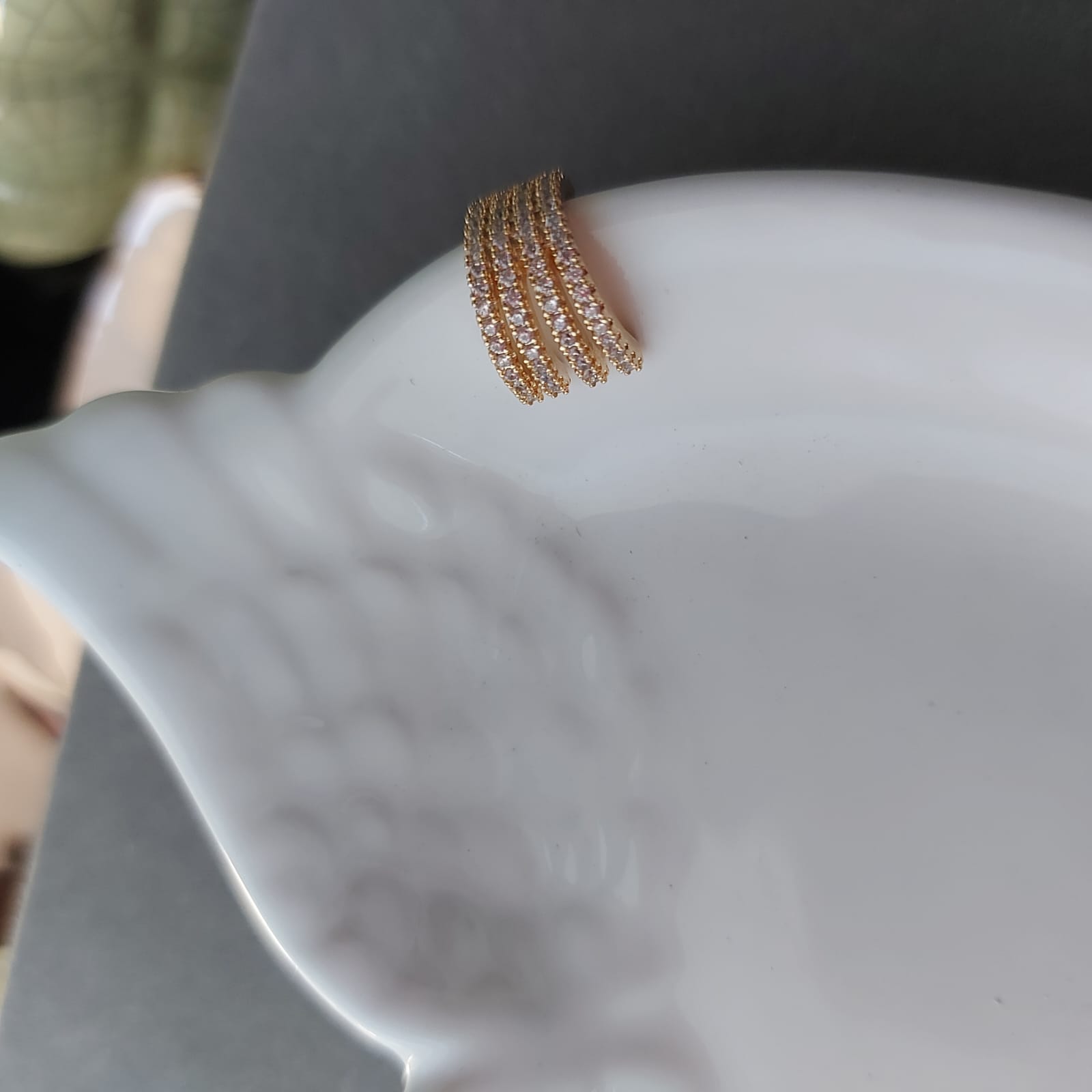 Semijoias: Piercing fileiras micro zircônias banhado em ouro amarelo 18k.