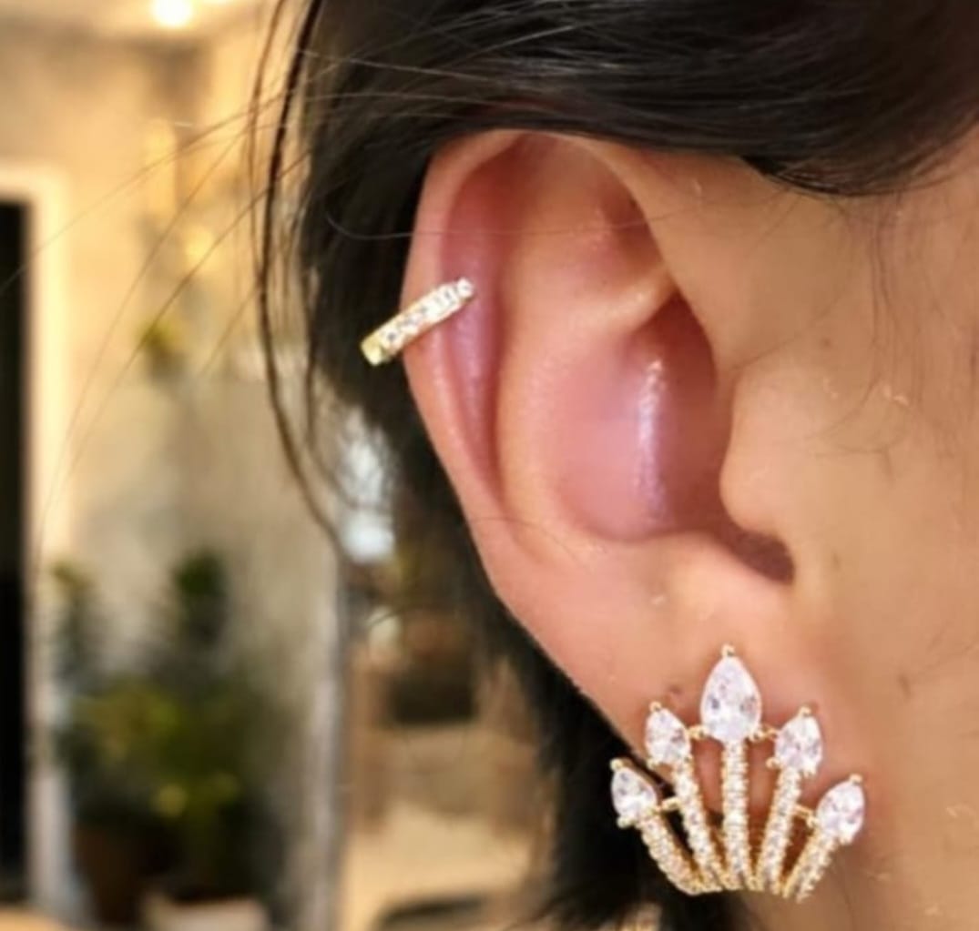 Semijoias: Brincos banhados em ouro 18 k, cravação em zircônias.