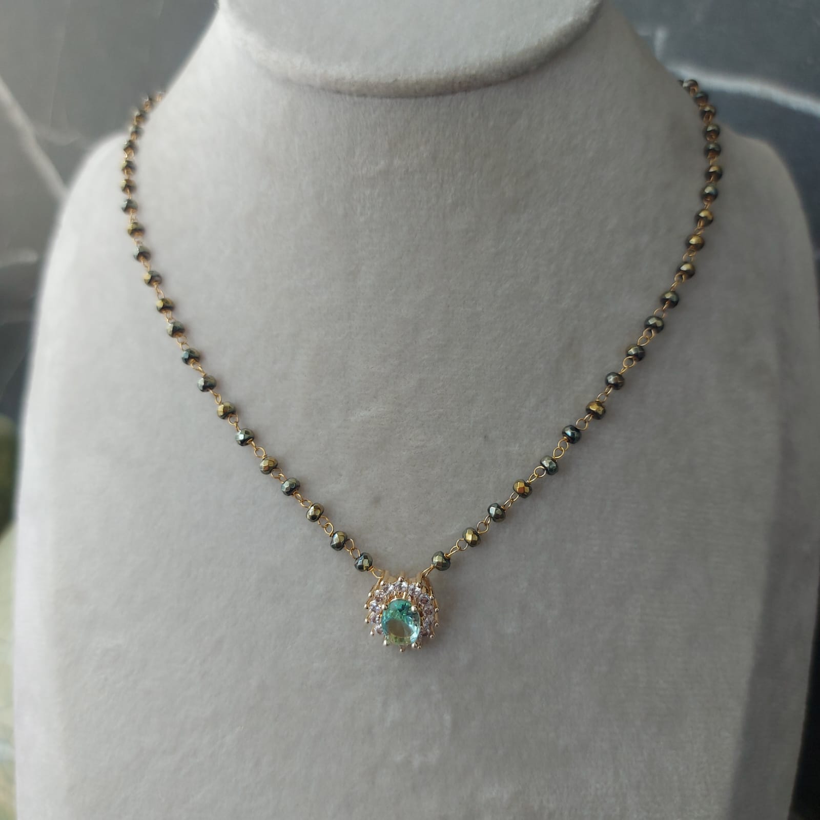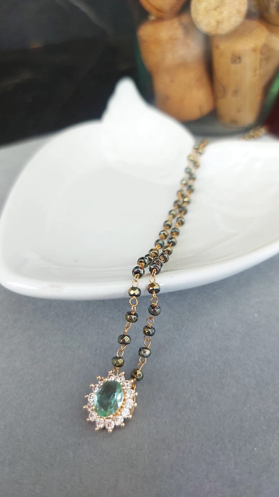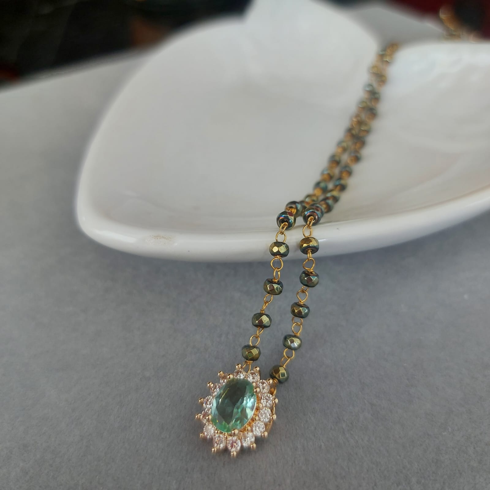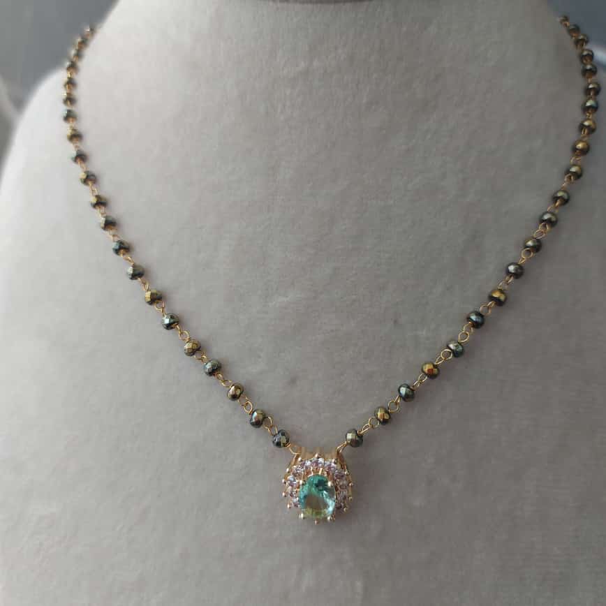 Semijoias: Colar contrapinado com hematitas e pingente cravejado em zircônias.