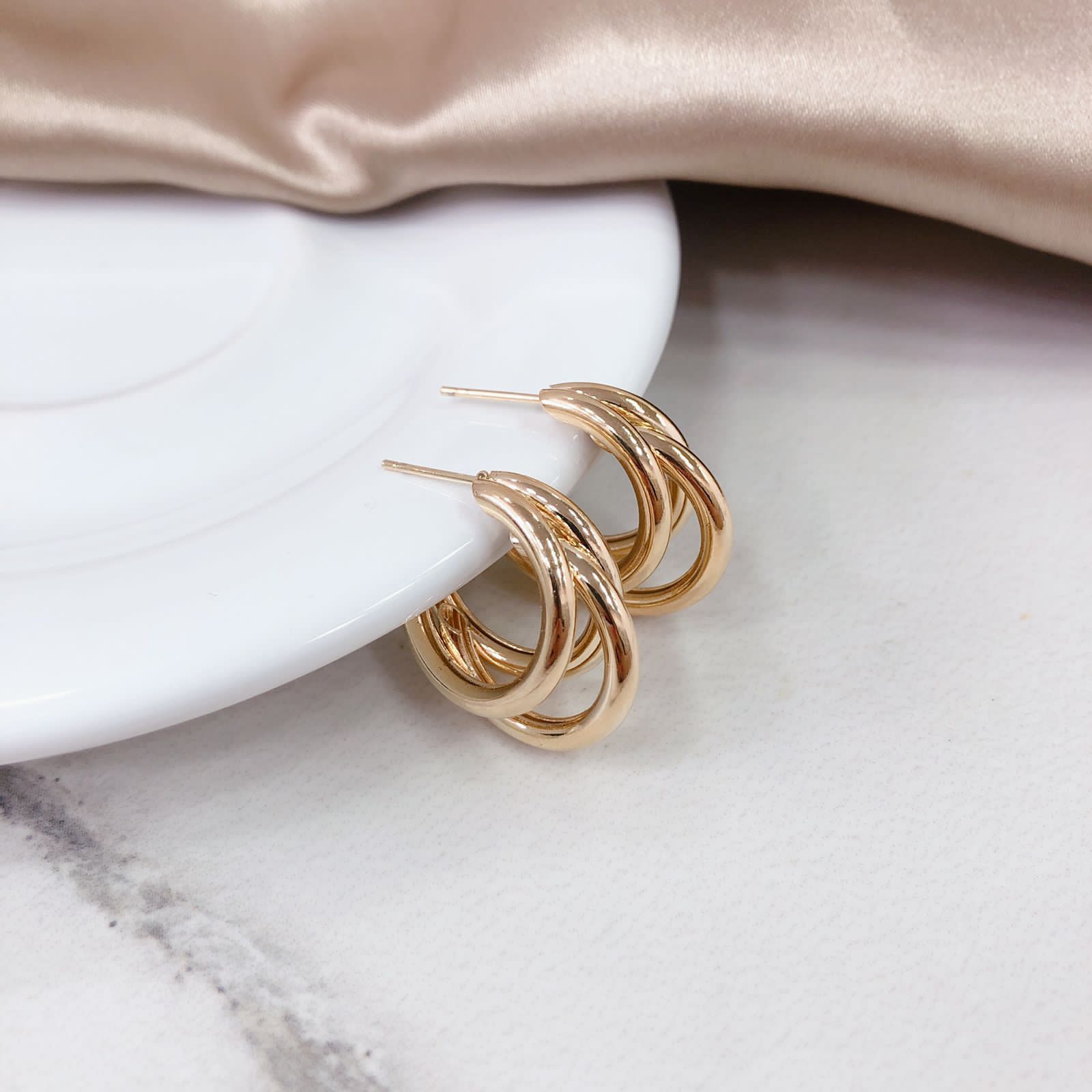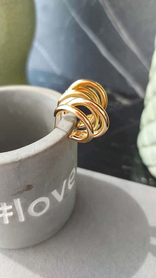 Semijoia - Brinco Argola 3 Fileiras Lisas Confeccionado em Banho de Ouro Amarelo 18K.