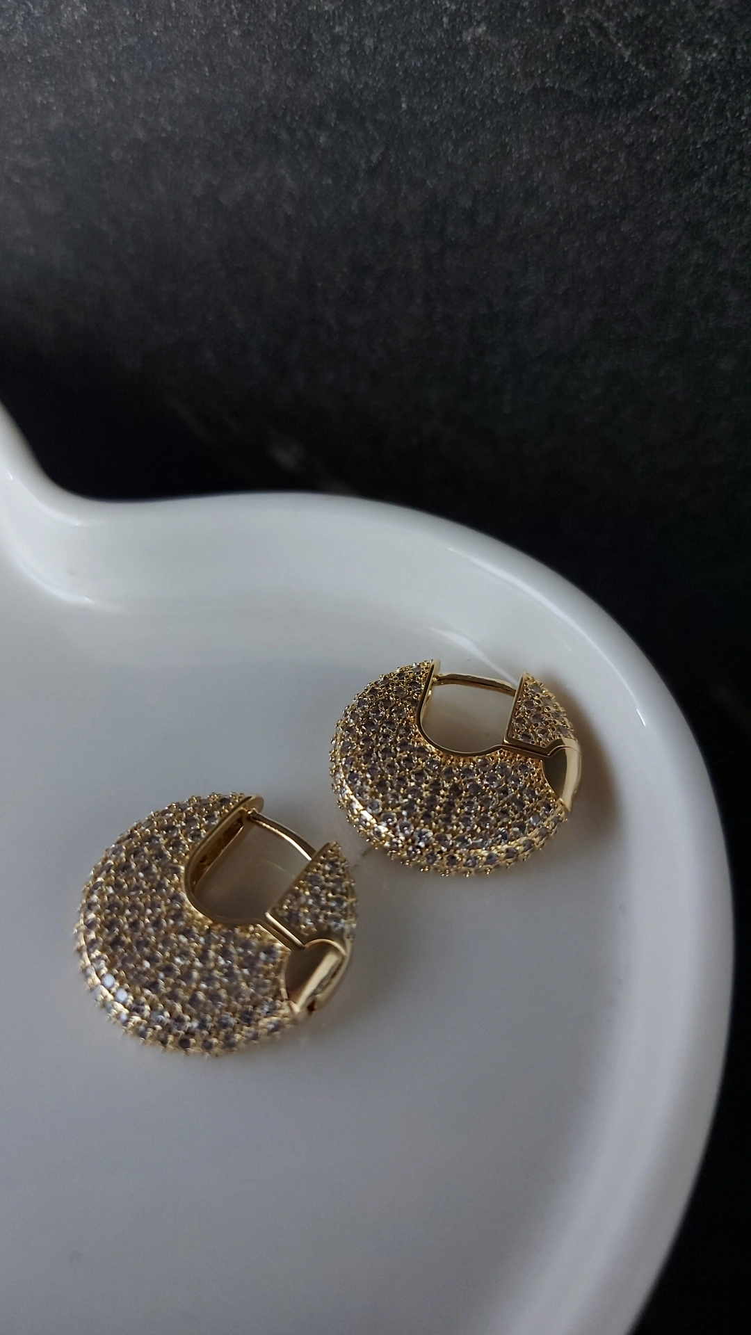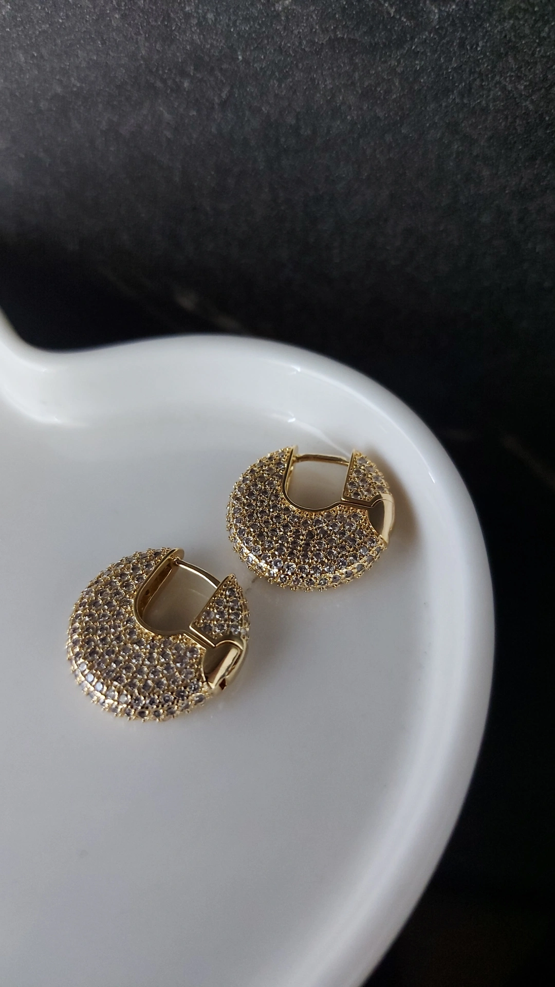 Argola lua cheia toda cravejada em zircônias banhada em ouro amarelo 18k.
