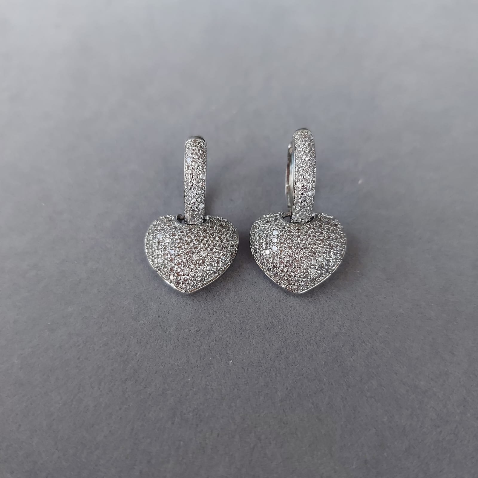 Semijoia: Brinco Argola Coração cravejado em micro zircônia.