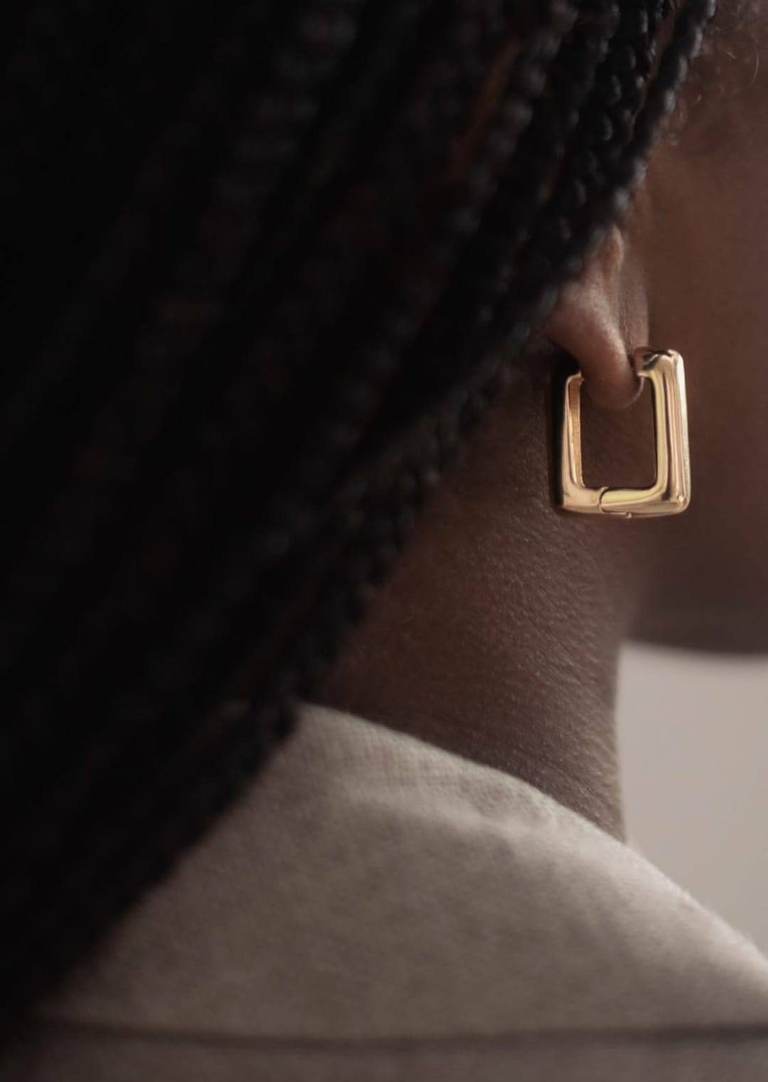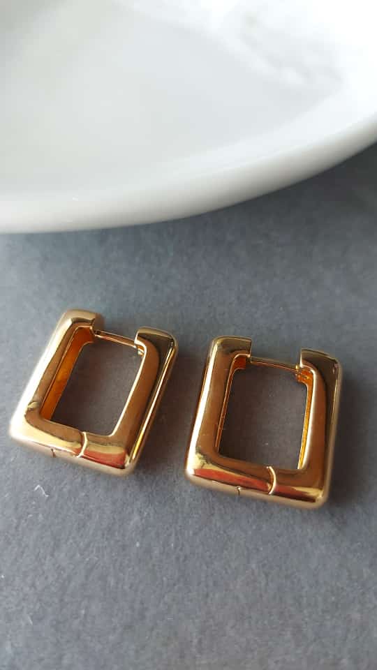 Semijoias: Argola Lisa quadrada banhada em ouro 18k.