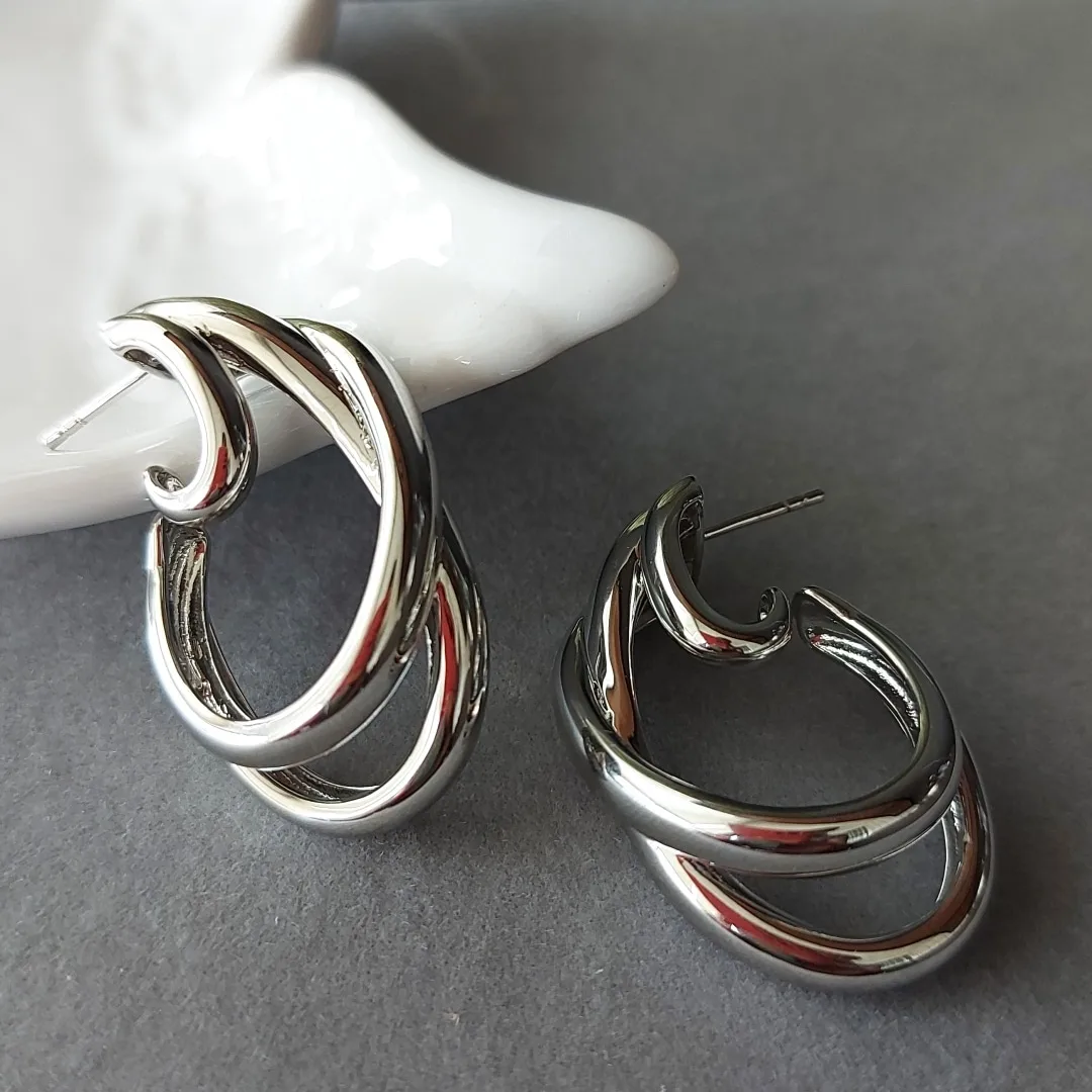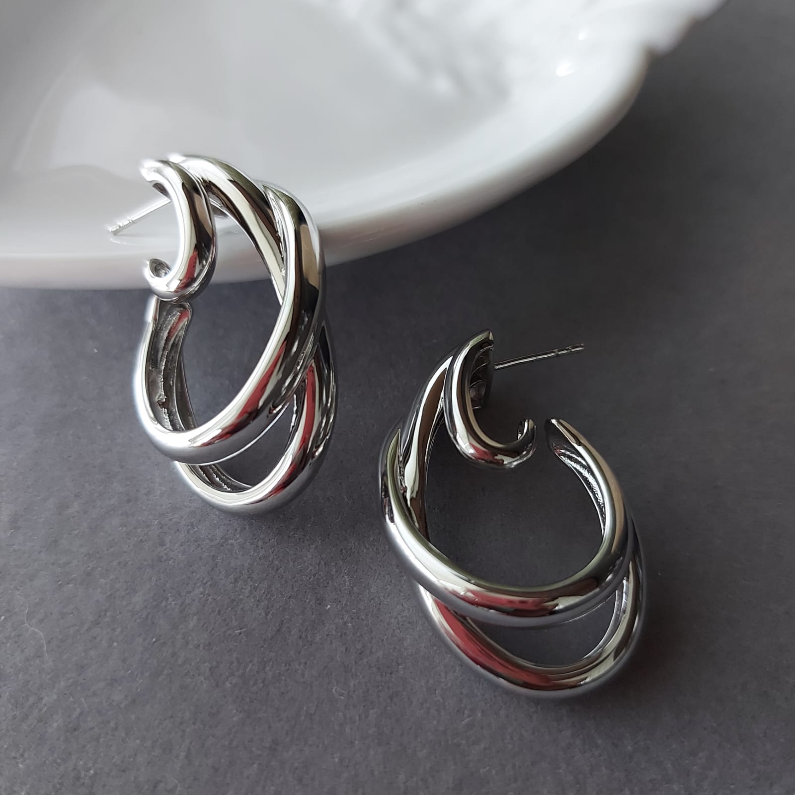 Semijoias: Argola tripla lisa banhada em ródio branco.