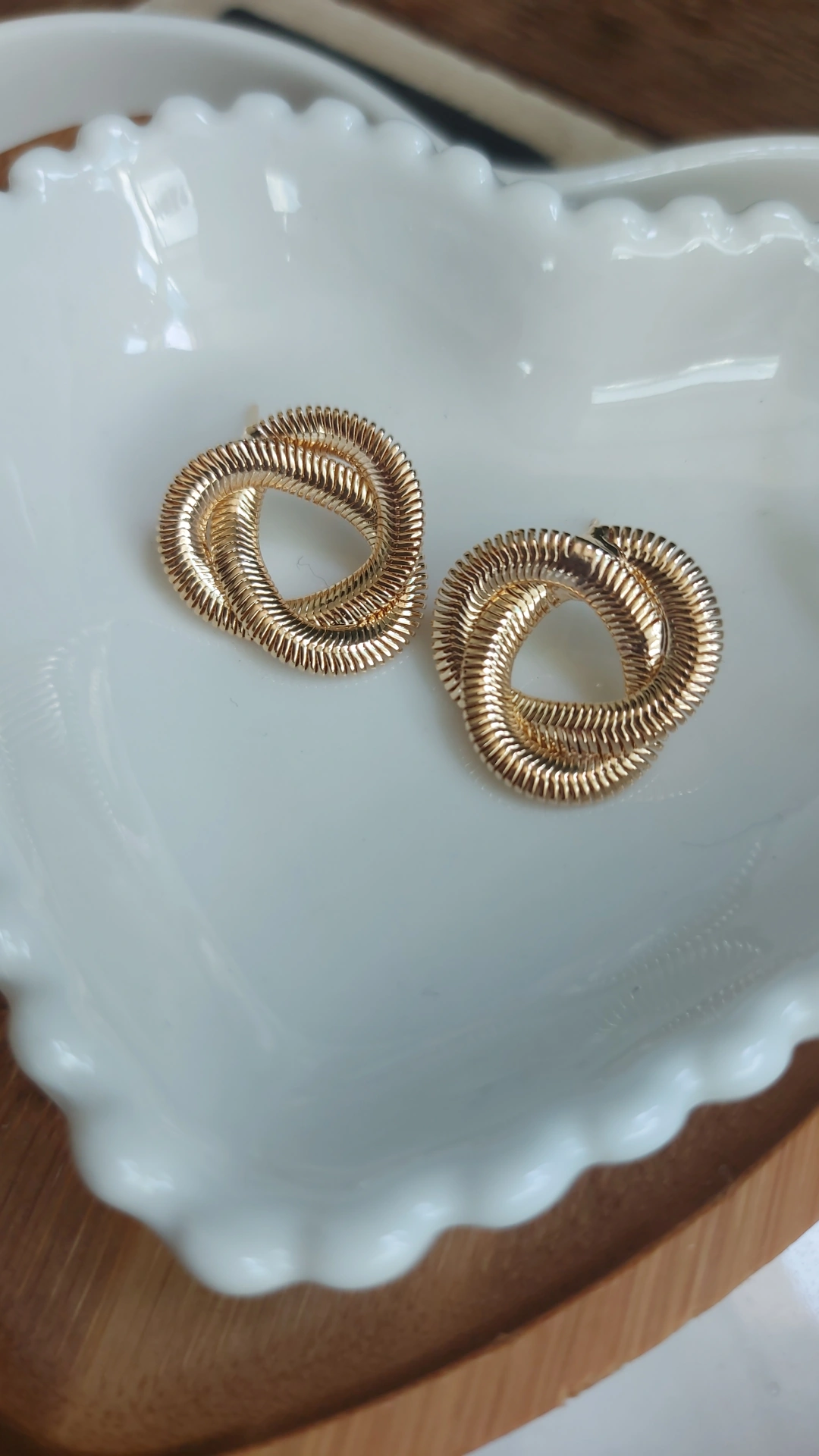 Brinco estilo malha banhado em ouro 18k.