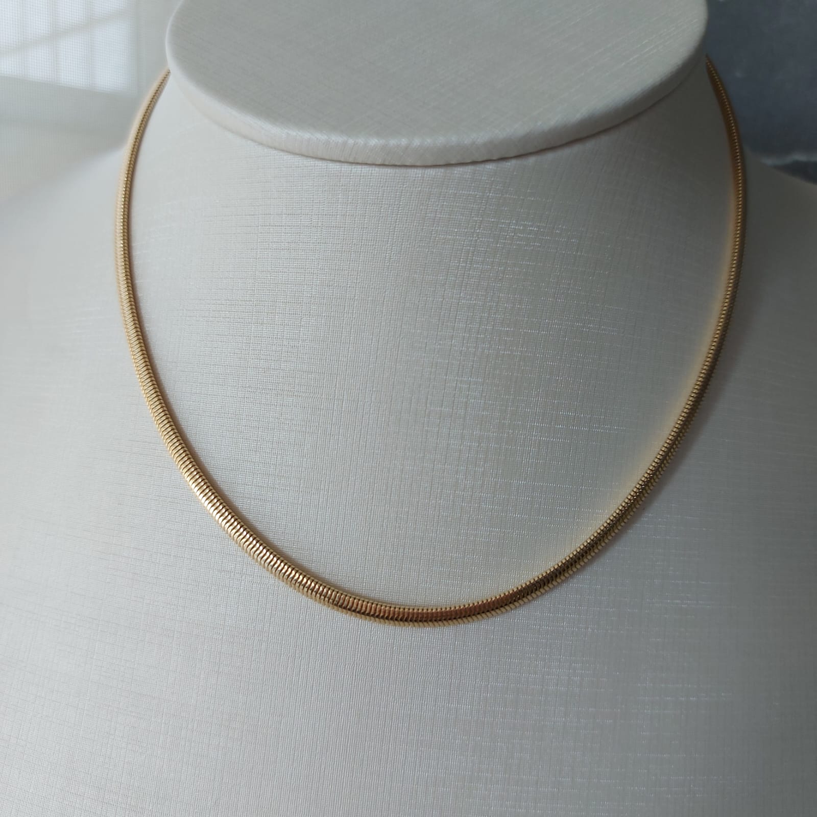 - Semijoia - Choker Malha Liso Confeccionado em Banho de Ouro Amarelo de 18K.
