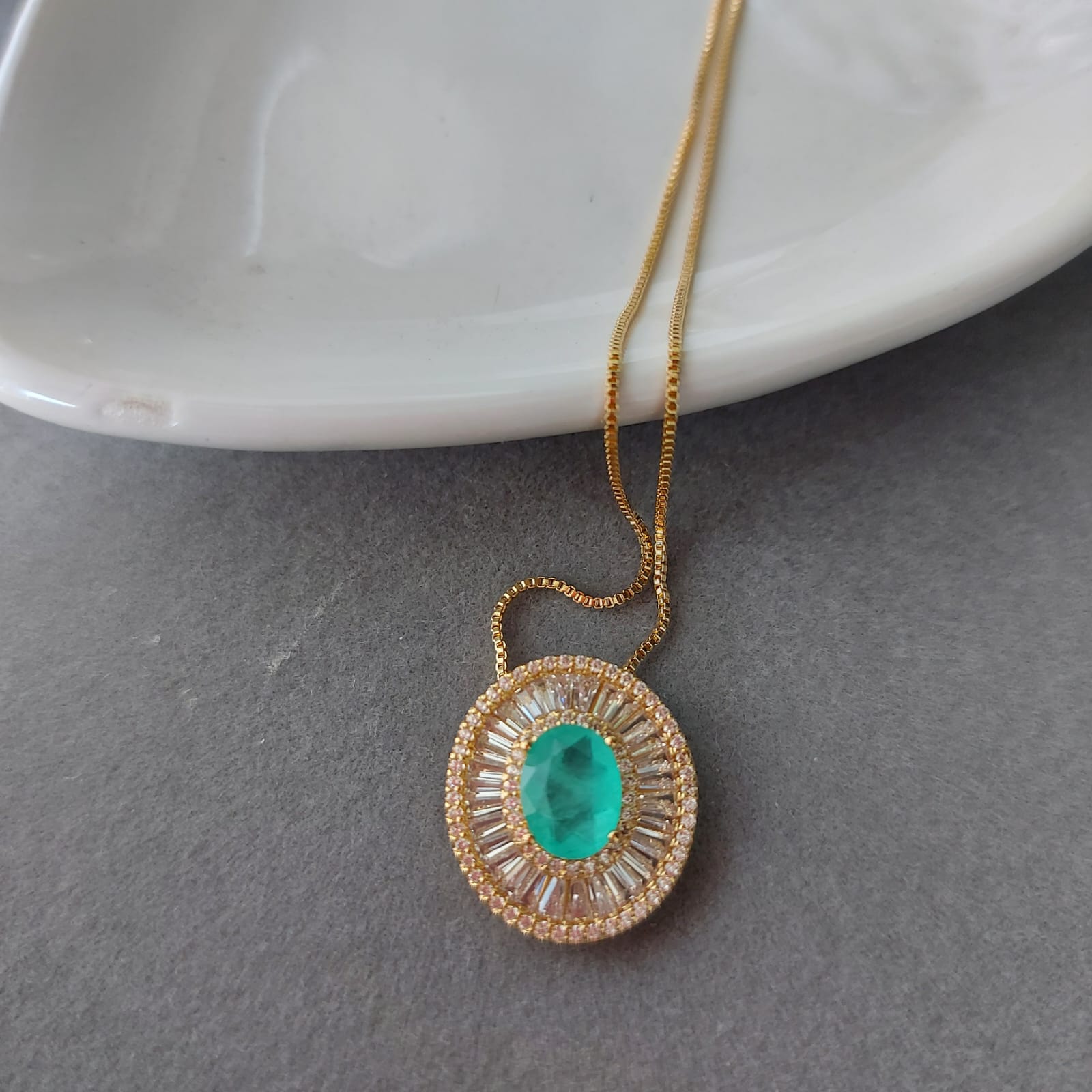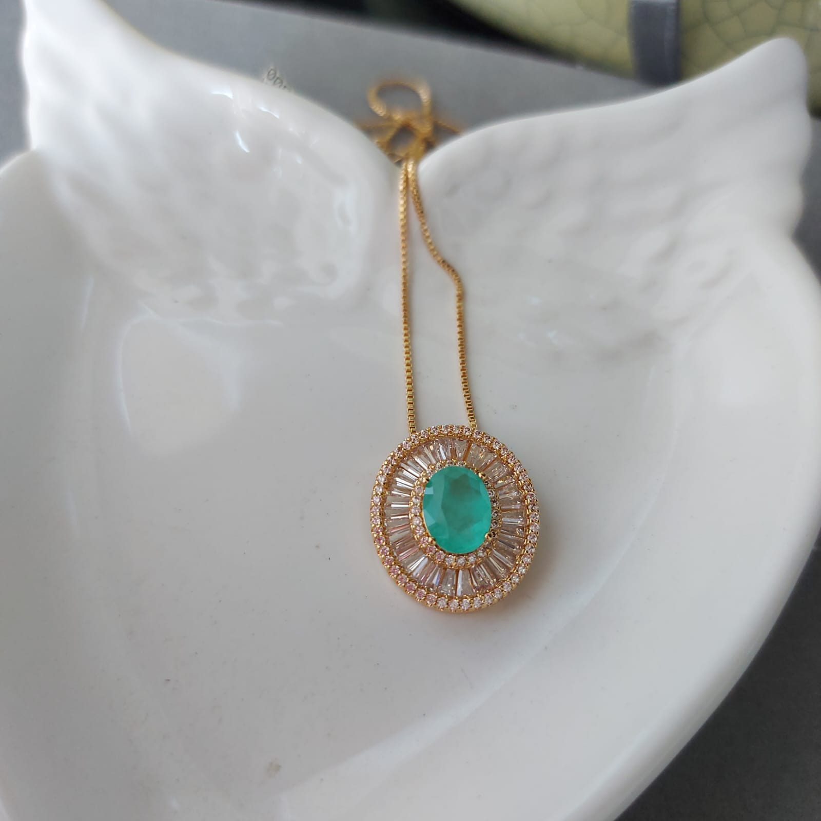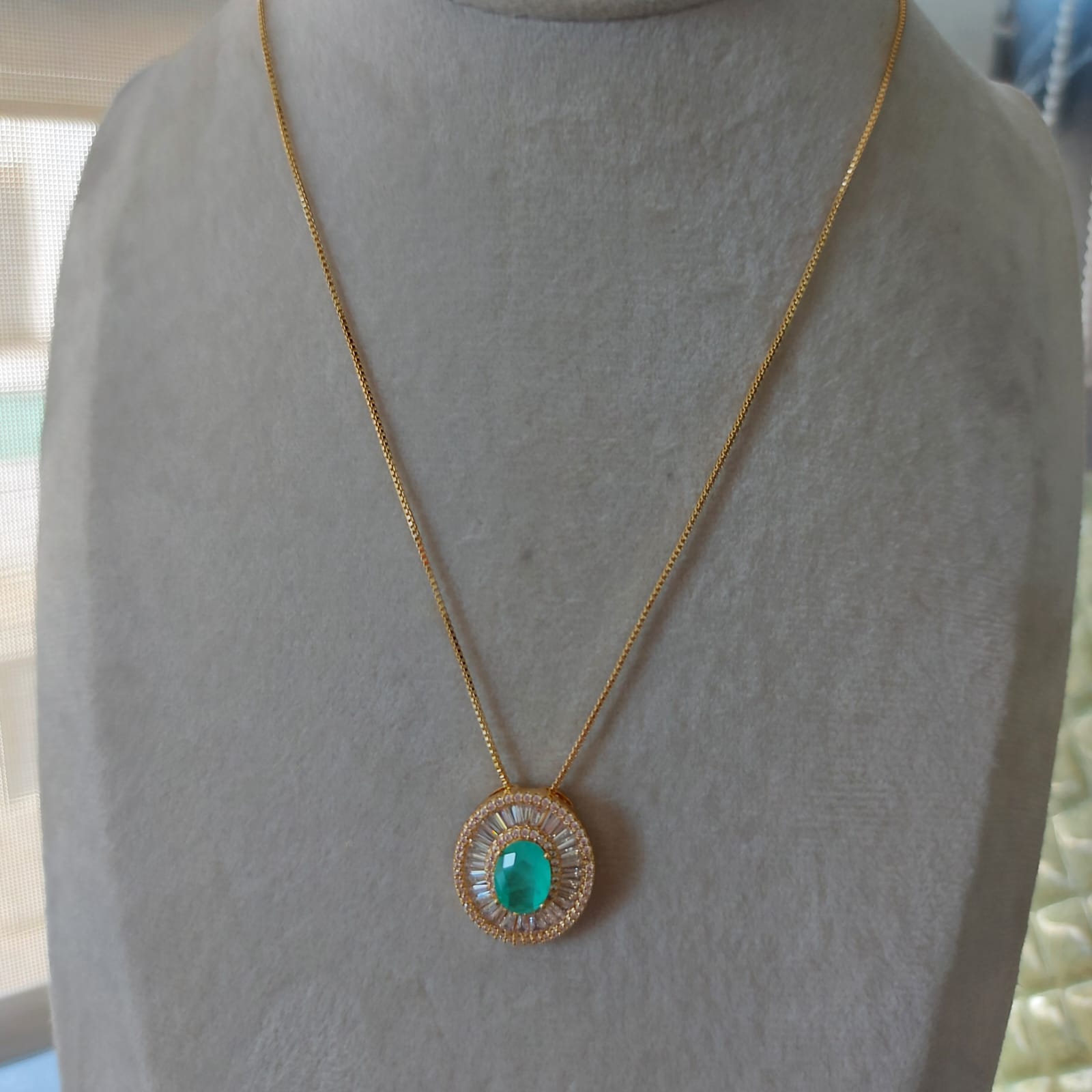 Semijoias : Colar corrente veneziana pingente oval micro zircônias banhado em ouro 18k.