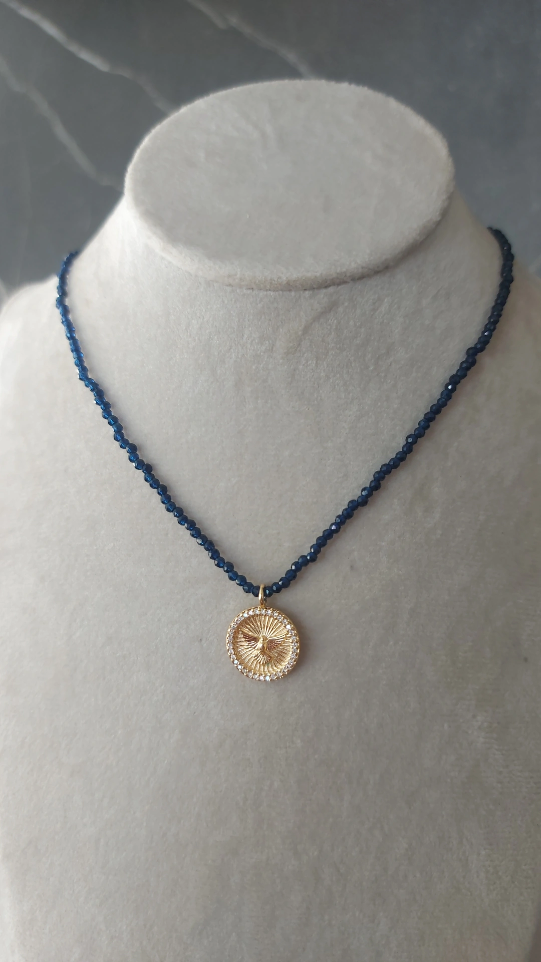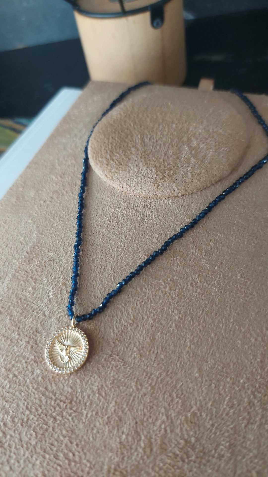 Colar mini jade com pingente divino banhado em ouro 18k.
