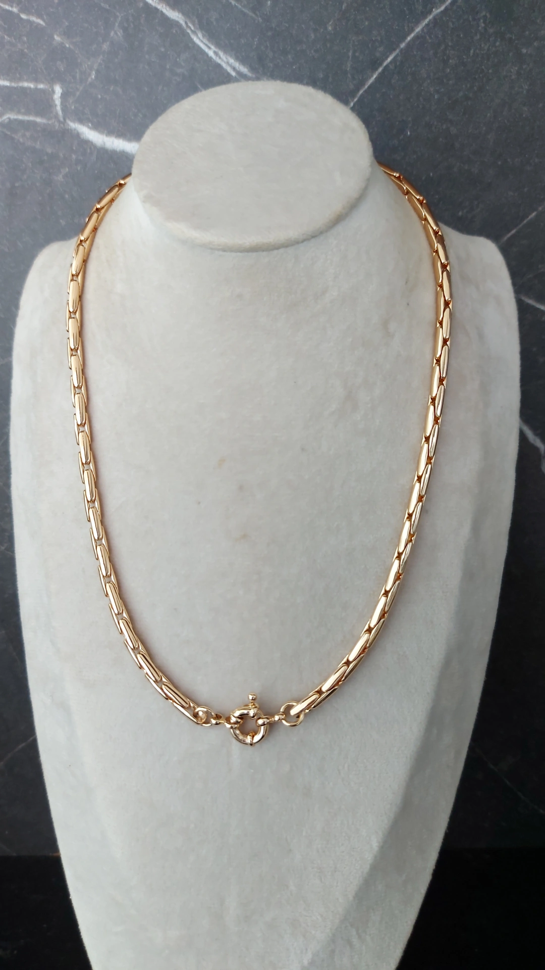 Colar escamas fecho boia banhado em ouro amarelo 18k.