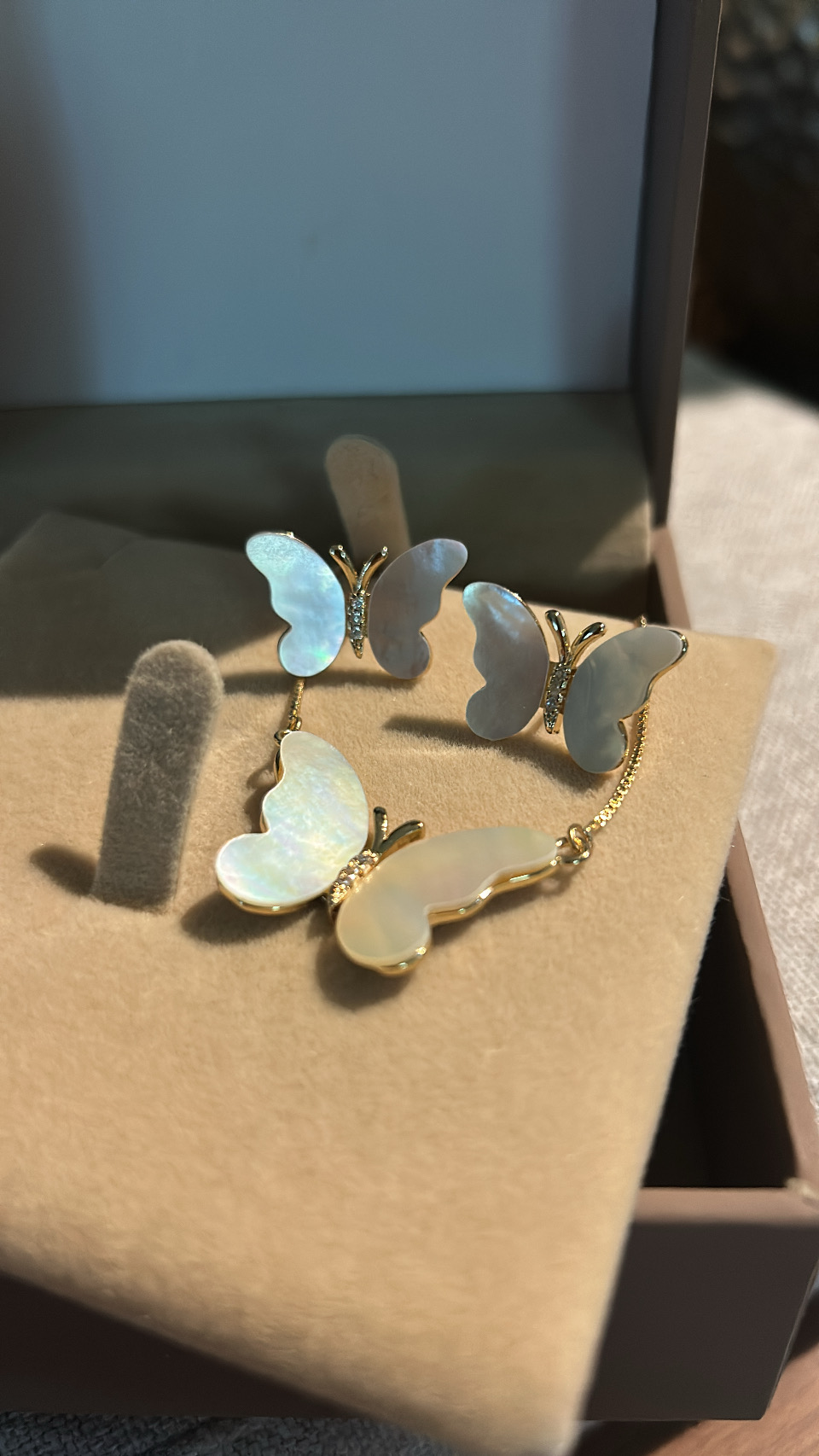 Conjunto borboleta em madrepérola banhado em ouro 18k.