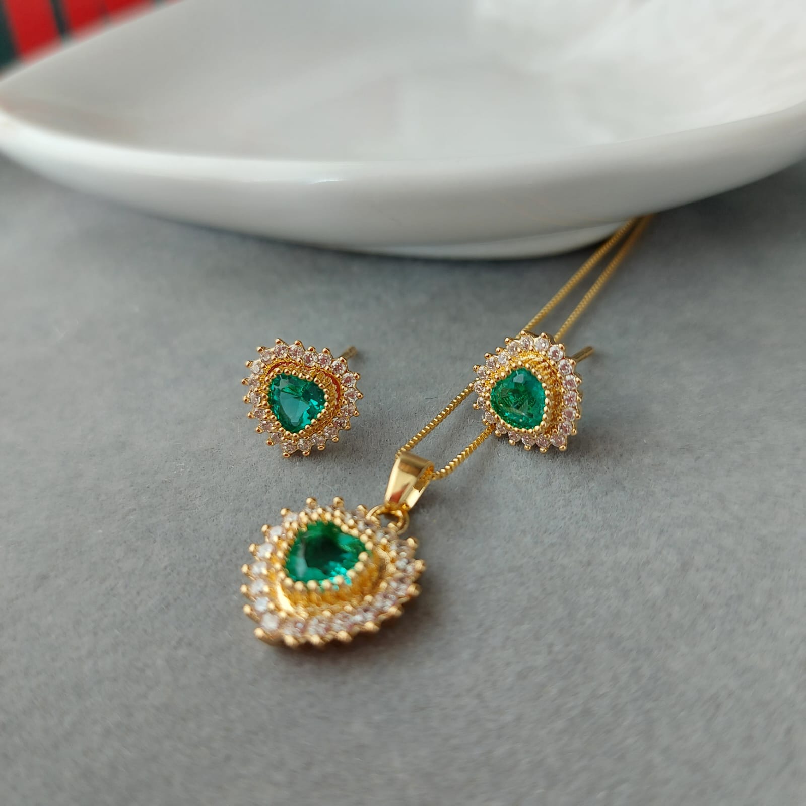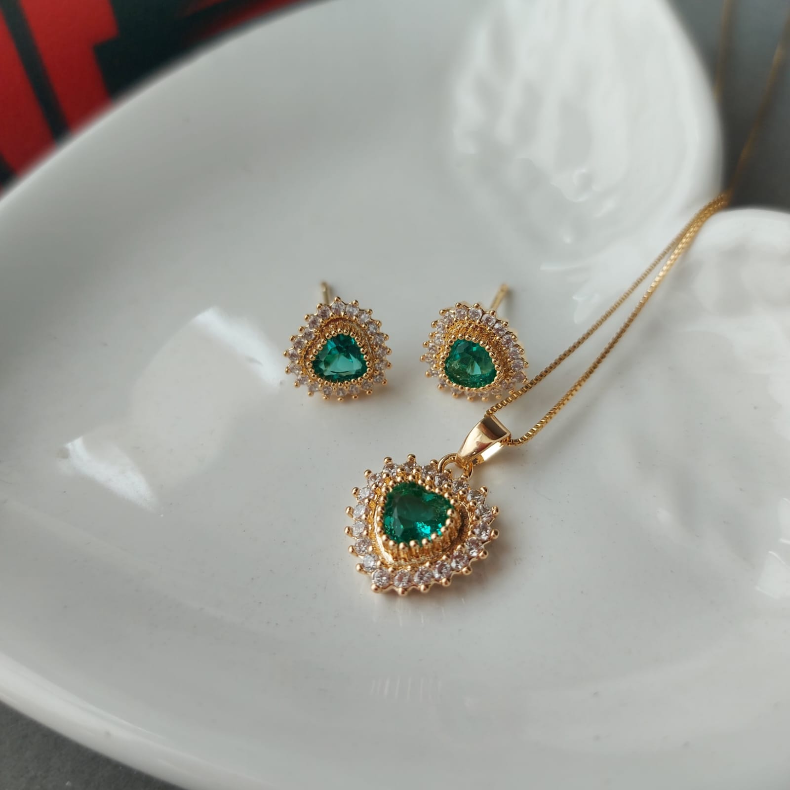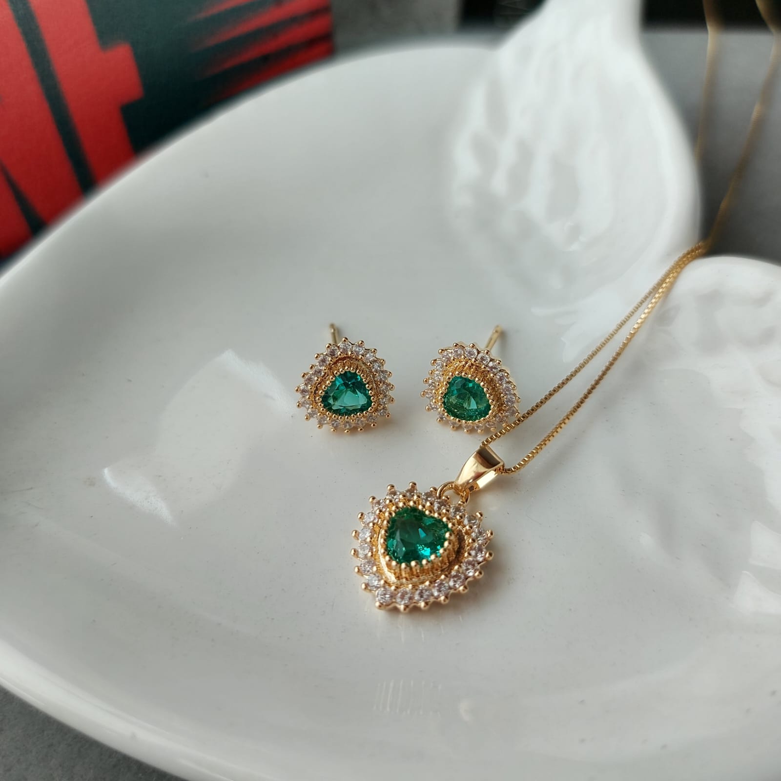 Semijoias: Conjunto coração cravejado banhado em ouro amarelo de 18k.