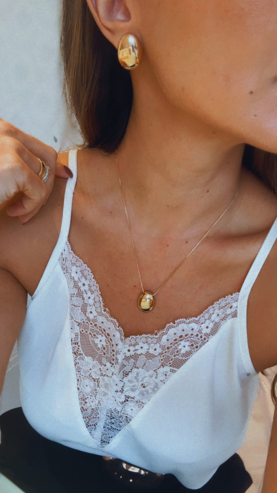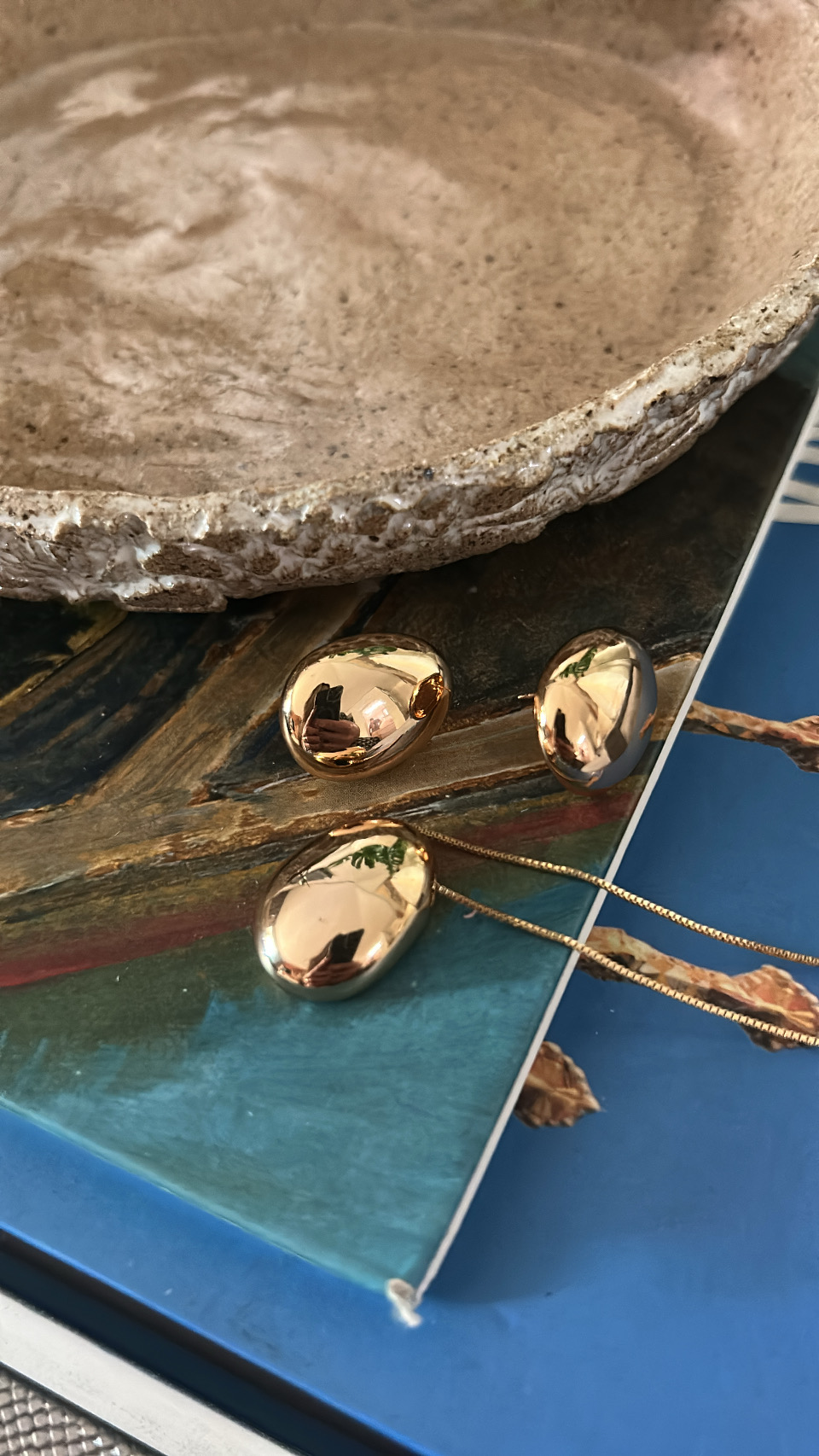Conjunto oval banhado em ouro 18k.