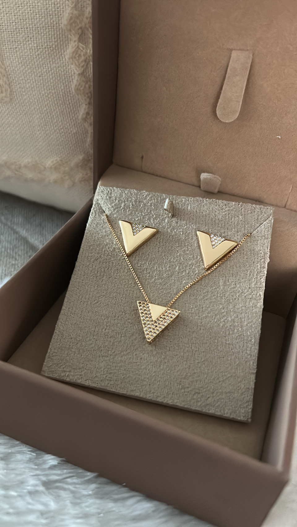 Conjunto vivre é um conjunto clássico banhado em ouro amarelo 18k com cravações em zircônias. Para mulheres que não abrem mão de serem chiques e atemporais.