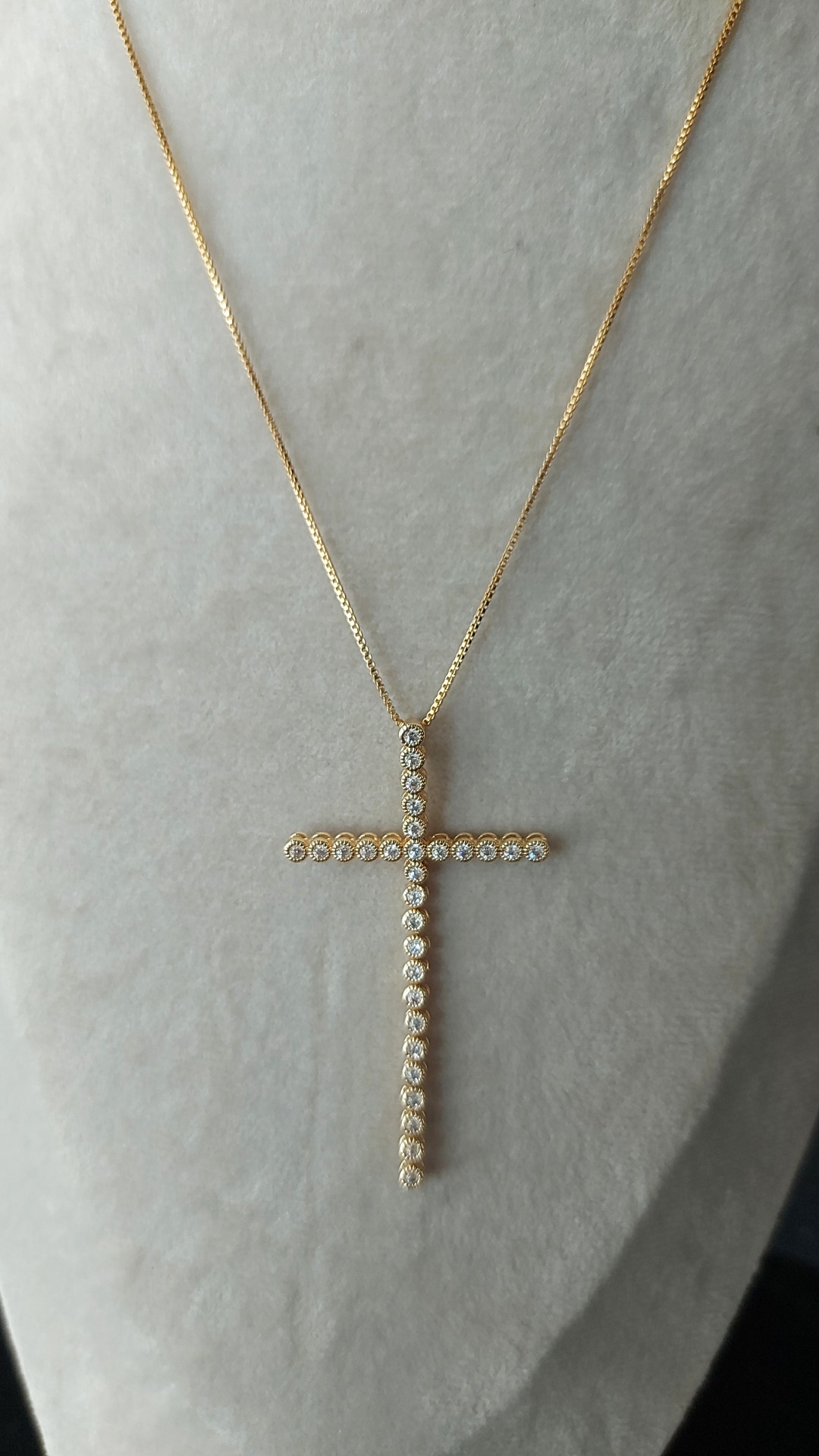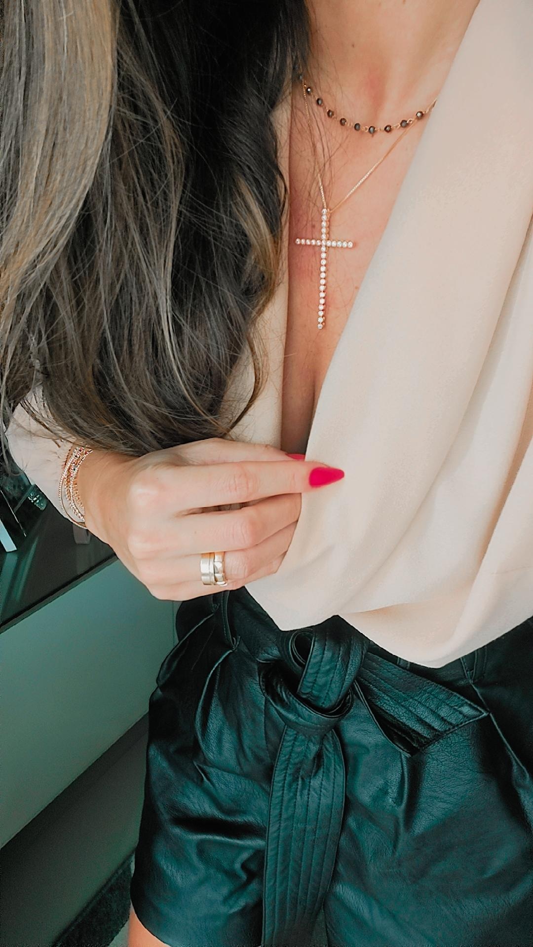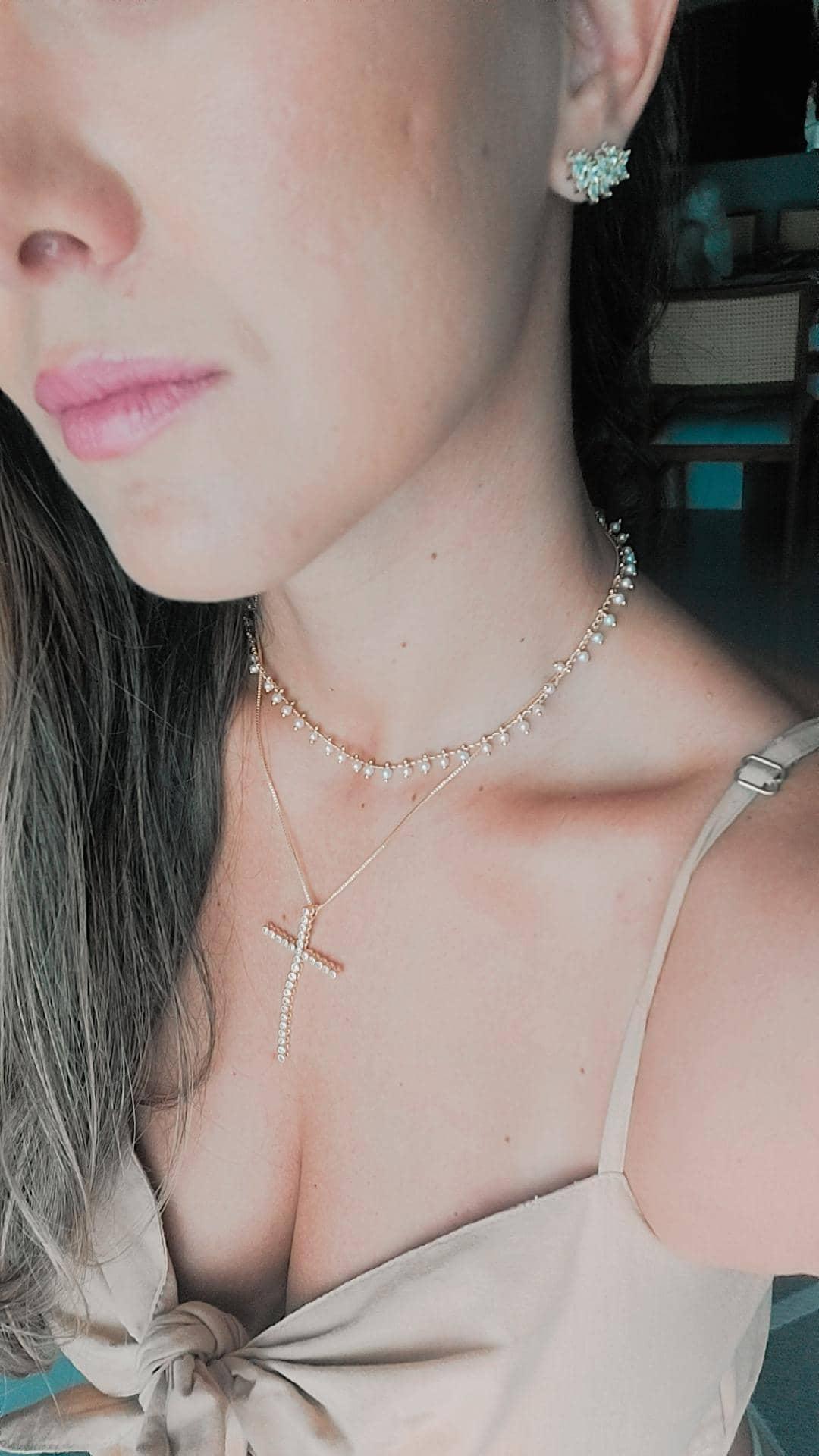 Semijoias: Cruz maleável corrente veneziana banhada em ouro amarelo 18k.