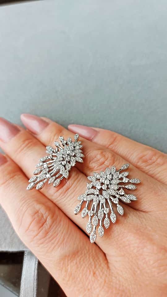 Semijoias: Brinco ear cuff navetes cravejados em micro zircônias.